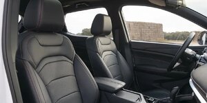 • Отделка сидений экокожей черного цвета с красной прострочкой